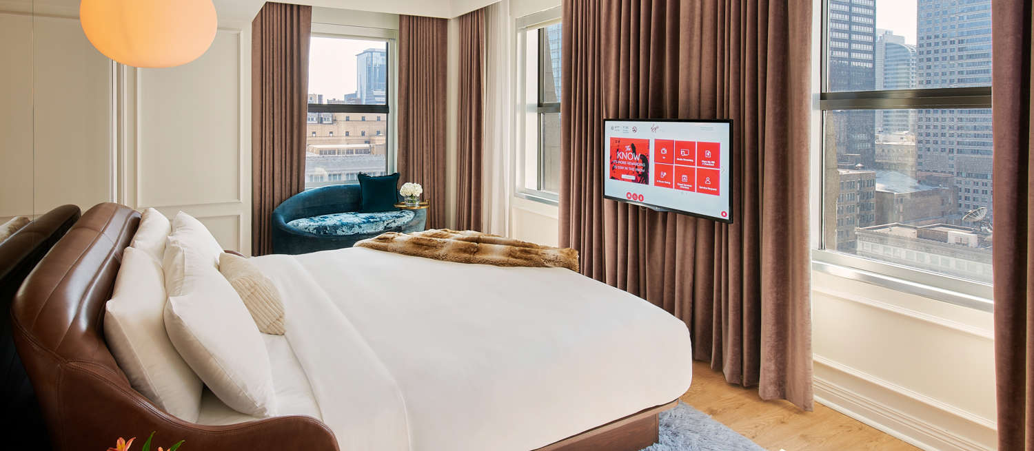 Our luxury hotel in Downtown Chicago offers everything you need for a comfortable stay. Spacious living and sleeping areas, separated by privacy partitions. One-of-a-kind patented beds. Walk-in showers. Sit-down vanities. And that's just in our chambers, wait until you see the suites! Whether you are looking for a romantic stay, family retreat or bringing your dog, Virgin Hotels Chicago has everything you need for an unforgettable stay in Downtown Chicago.