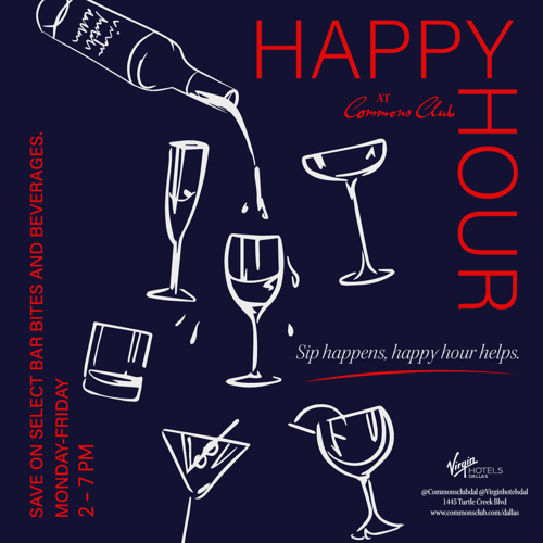Sip happens…Happy Hour helps! Shake up your weekdays with happy hour specials worth toasting to at Commons Club—think dazzling deals on your faves like $7 house wine, $9 Espresso Martinis, & bites like $15 Whipped Ricotta, $8 Truffle Fries & more.