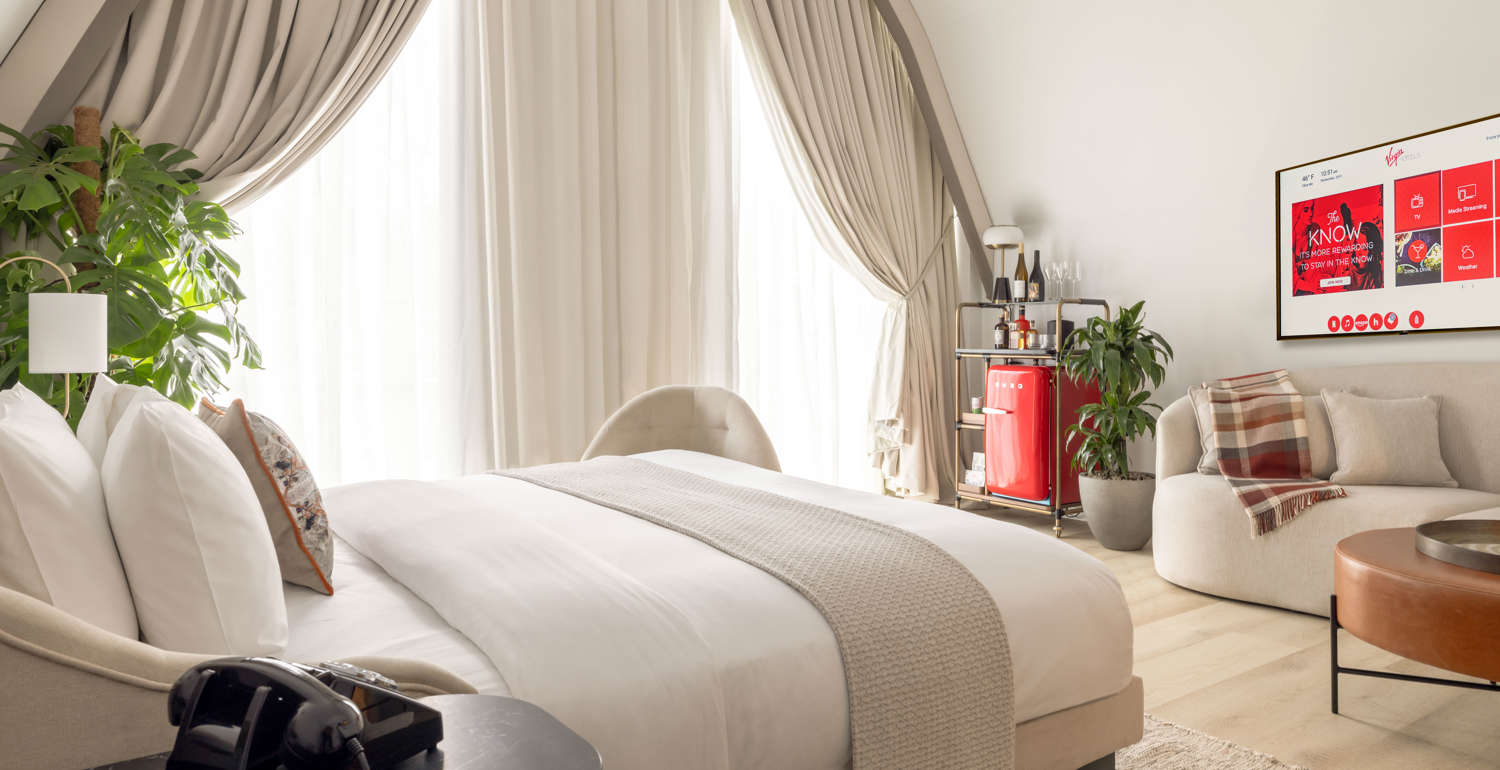 Take a flight of fancy in this unique Virgin Hotels suite, overlooking the bustling Cowgate, where everything you need is just a step away. Nestled in the medieval Greyfriars Hall, this three-tiered hotel suite is named in honour of Sir Richard's father, Ted Branson. Its vaulted ceilings and oak panelling are a handsome tribute.