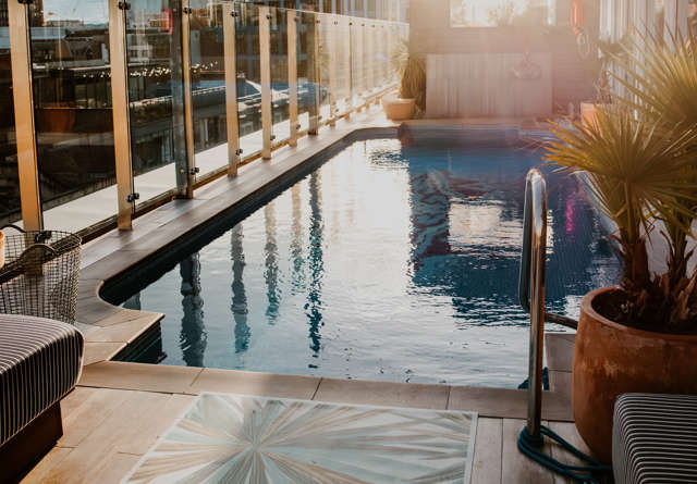 Your poolside oasis in the heart of Shoreditch. Grab a towel and make your way up to the rooftop bar, where sun-kissed cocktails, refreshing bites and our sparkling blue pool await
