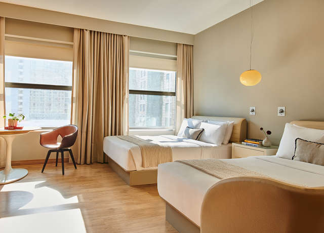 Double the beds, double the fun. These luxury hotel rooms are ideal for families or friend groups, with two double beds, two vanities, and two areas – the dressing room and the sleeping lounge – separated by privacy partitions. #SquadGoals.