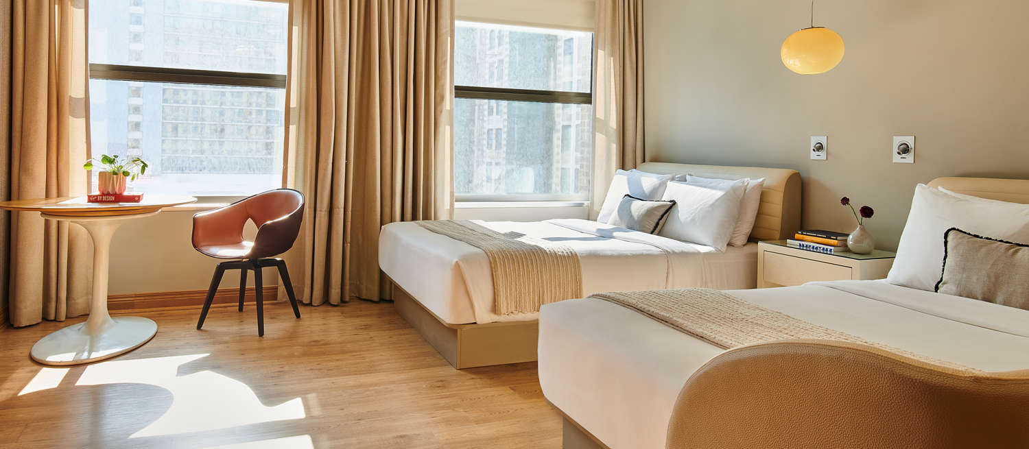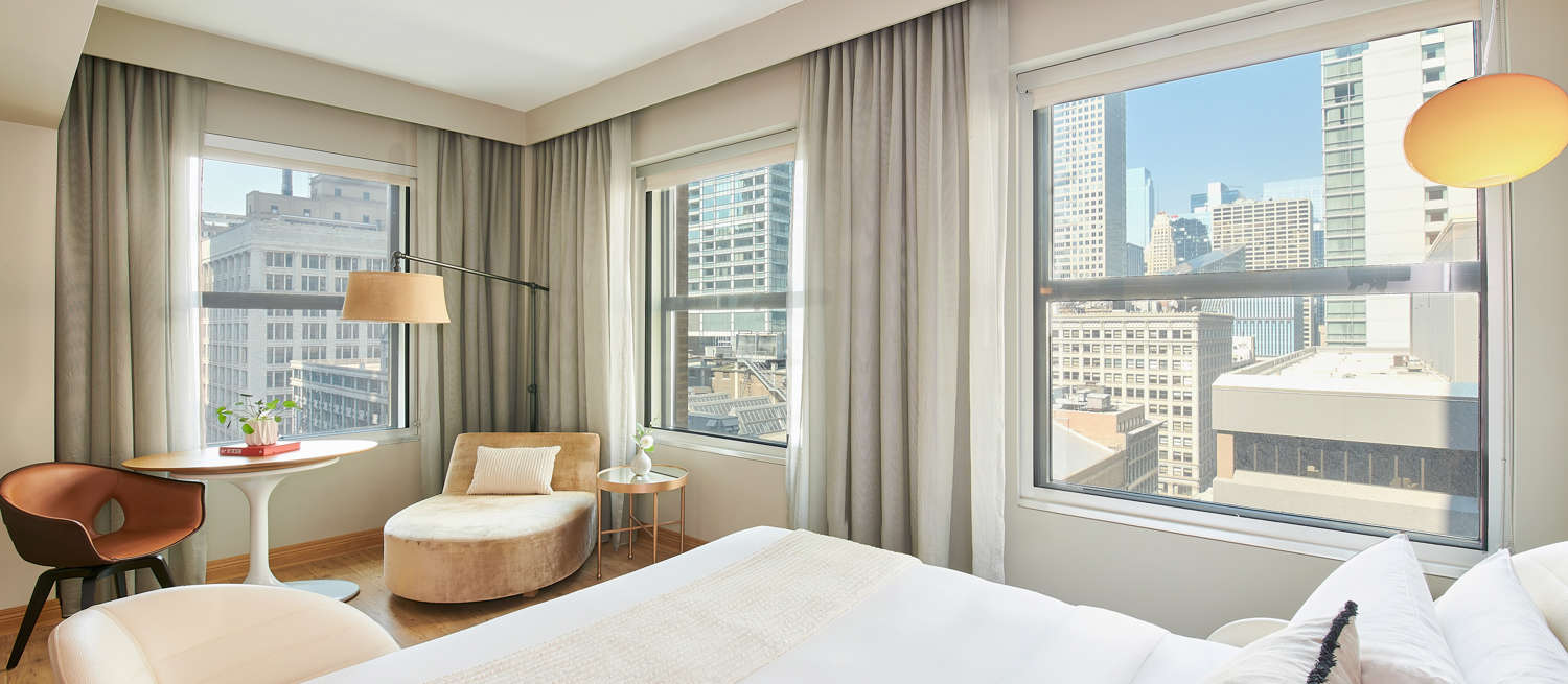 Our luxury hotel in Downtown Chicago offers everything you need for a comfortable stay. Spacious living and sleeping areas, separated by privacy partitions. One-of-a-kind patented beds. Walk-in showers. Sit-down vanities. And that's just in our chambers, wait until you see the suites! Whether you are looking for a romantic stay, family retreat or bringing your dog, Virgin Hotels Chicago has everything you need for an unforgettable stay in Downtown Chicago.