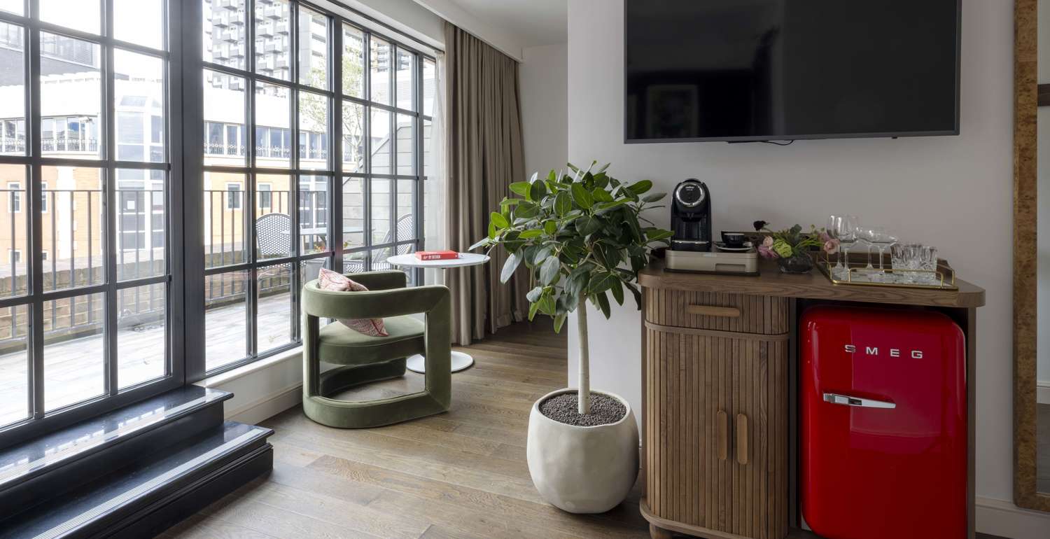 Imagine kicking back in a London hotel with private balcony overlooking Shoreditch, fresh drink in hand and the whole world at your feet. Well, you don’t need to imagine. Whether it’s morning coffees or evening tipples, our most regal chamber is just the ticket. Feel free to strut about like you own the place. Because for tonight, you do.