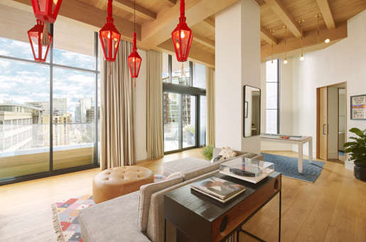 Richard’s Flat is the perfect luxury accommodation for any milestone celebration or getaway. This two-bedroom, two-bathroom penthouse features unique designs such as stylish red lanterns over the living room area, a massive dual-head shower with a red bathing tub inside, and a record player with classic Music City vinyl records. Looking to add a little play during your stay? Sip on a cocktail or two while taking in the downtown skyline on your private balcony or shoot a game of pool in-suite.